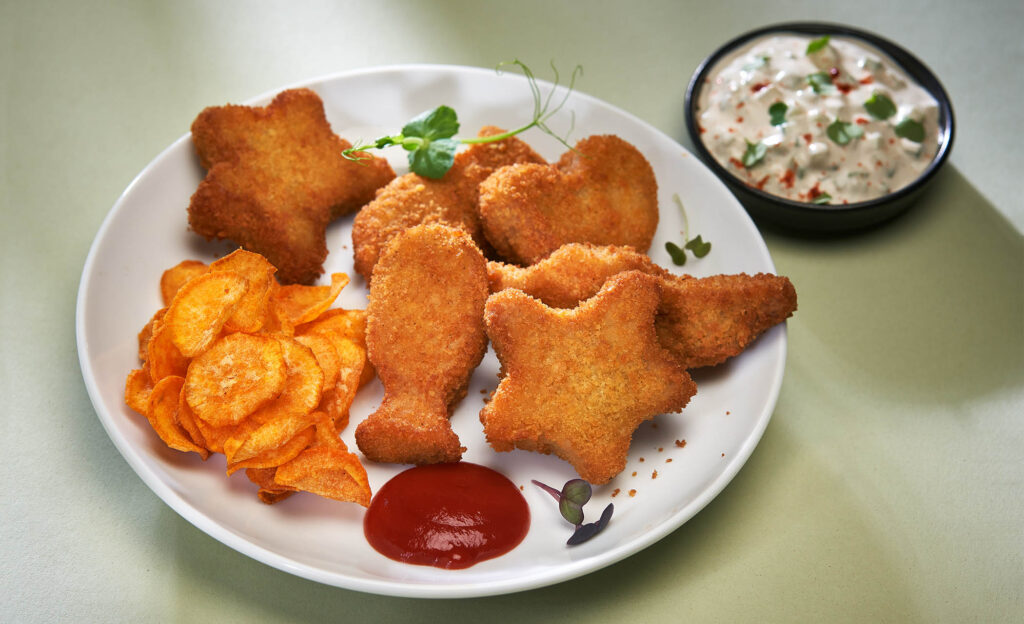 Fishnuggets Kids pripremimo prema uputama na ambalaži. Batat operemo i narežemo na jako tanke listiće, najbolje
